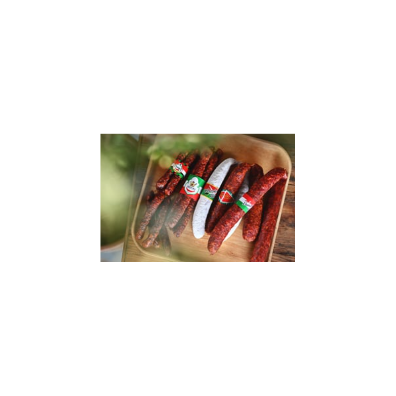 Vyladěná chuťová kompozice z masa divokého prasete a kvalitního vepřového výřezu. Doporučujeme ke grilování i pro studenou kuchyni.