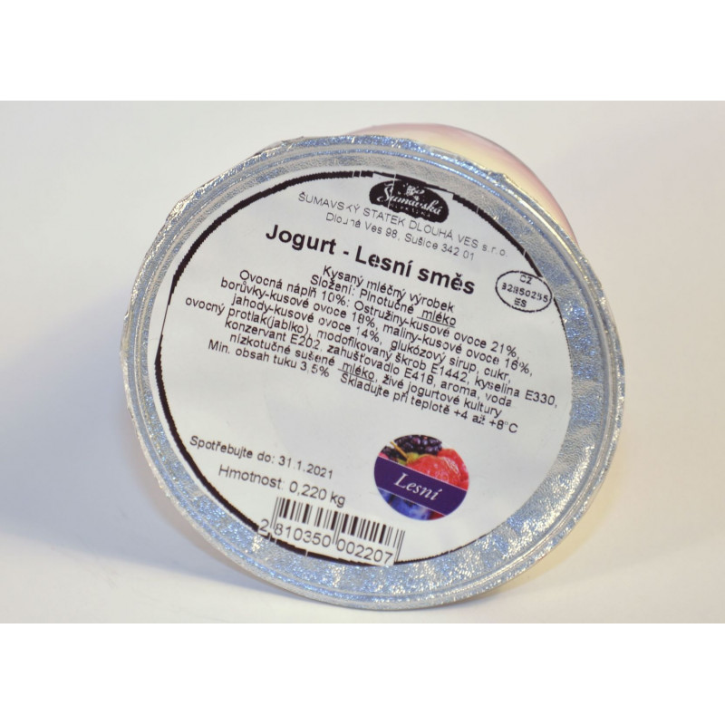 Skvělý jogurt z plnotučného mléka plný lesního ovoce ze šumavských hvozdů.