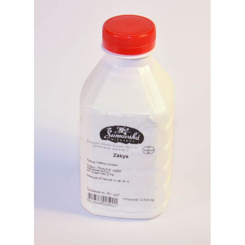 Lahodné zakysané plnotučné kravské mléko od krav pasoucích se na šumavských loukách.