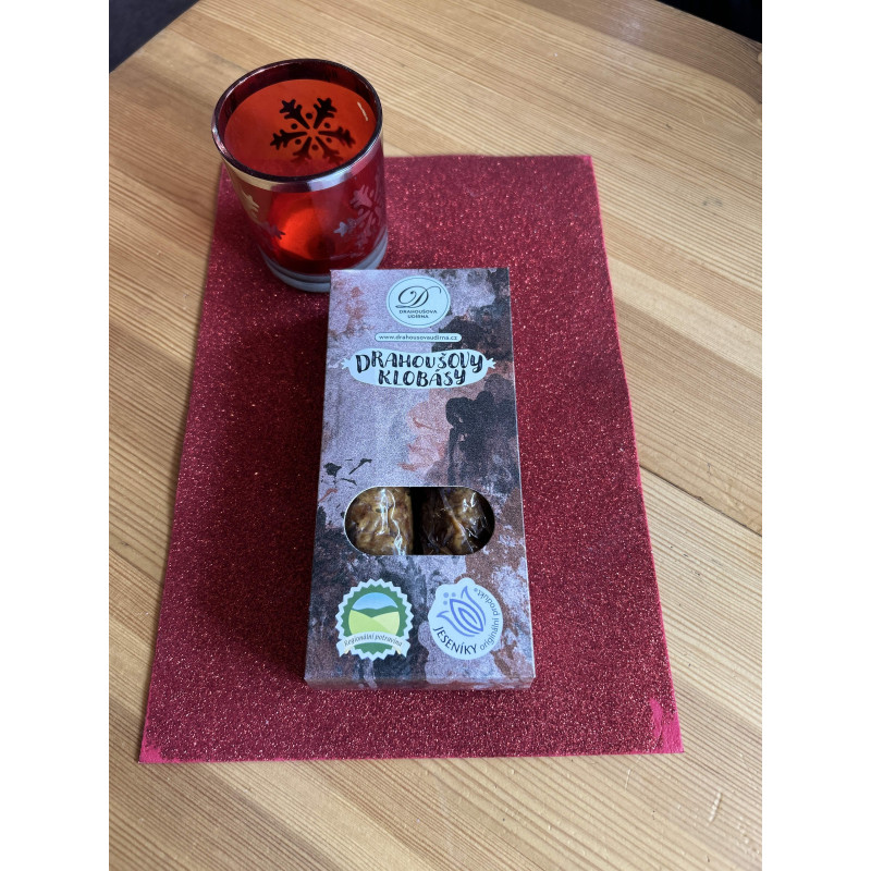 Drahoušovy klobásky jsou poctivým regionálním produktem z Jeseníků, ručně vyráběným podle tradiční receptury. Kombinace kvalitního hovězího a vepřového masa, jemně vyvážené kořenící směsi a česneku vytváří výraznou, přirozeně masitou chuť.